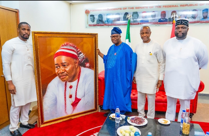 The artwork, a meticulously crafted portrait on canvas, designed to endure for at least 500 years under proper preservation conditions was named “Ad Infinitum” to symbolise an enduring friendship and a legacy that transcends time. In presenting the gift, Dr. Okonkwo respectfully requested His Excellency’s approval to have the portrait permanently displayed in the Senate Leadership Photo Gallery, where it would serve as both a personal tribute and a national symbol.